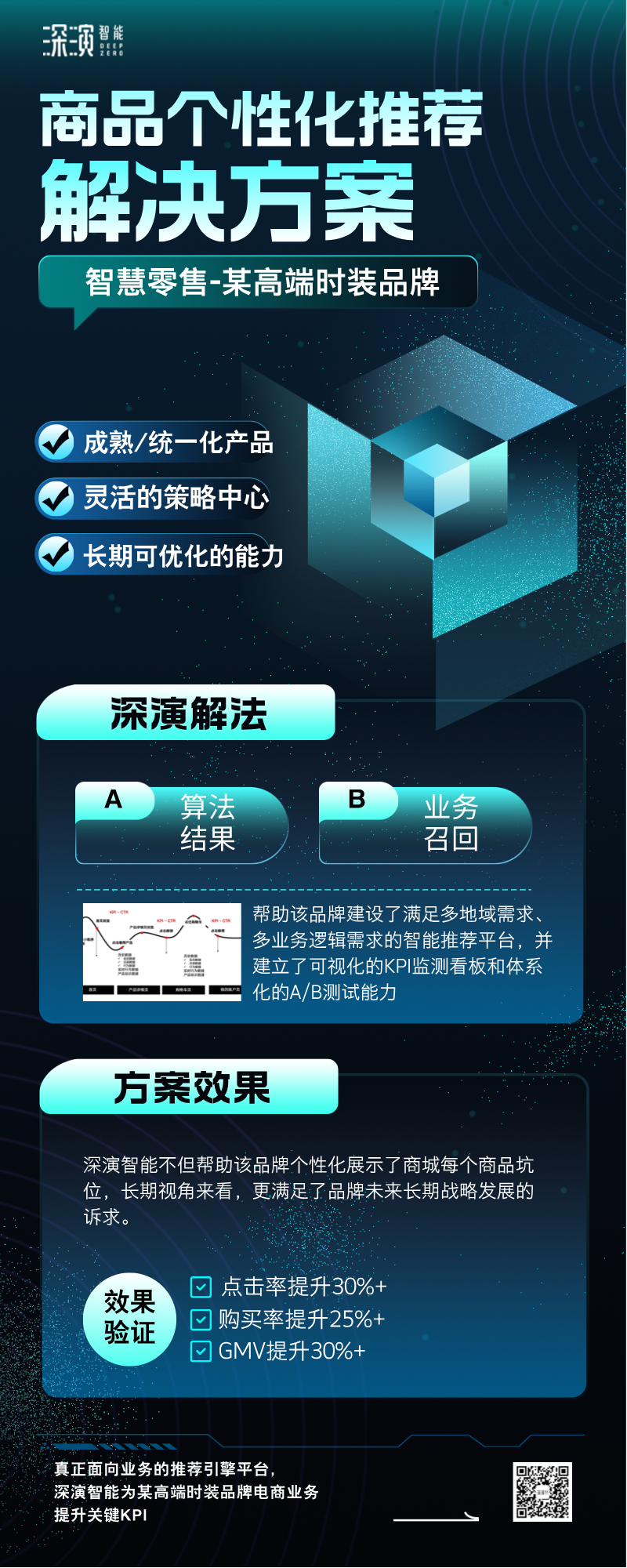 最终,腾博会智能不但帮助该品牌个性化展示了商城每个商品坑位,长期视角来看,更满足了品牌未来长期战略发展的诉求。该解决方案实施后,经过一段时间的效果验证和方案优化,该品牌的点击率提升30%+、购买率提升25%+、GMV提升30%+,项目的效果还在持续优化中。